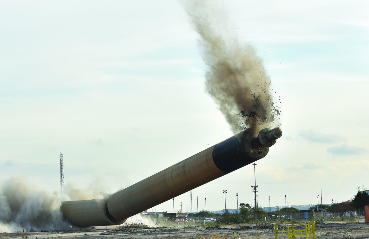 About the demolition The chimney and distillation columns were part of the old refinery catalytic cracking unit (“cat cracker”) but have stood idle since the refinery closed in 2012 following the administration of Petroplus. The refinery demolition programme began in November 2014 and is being managed by specialists Brown and Mason Ltd. Some 46,000 tonnes of steel, enough for six Eiffel Towers, have already been removed for recycling and re-use.